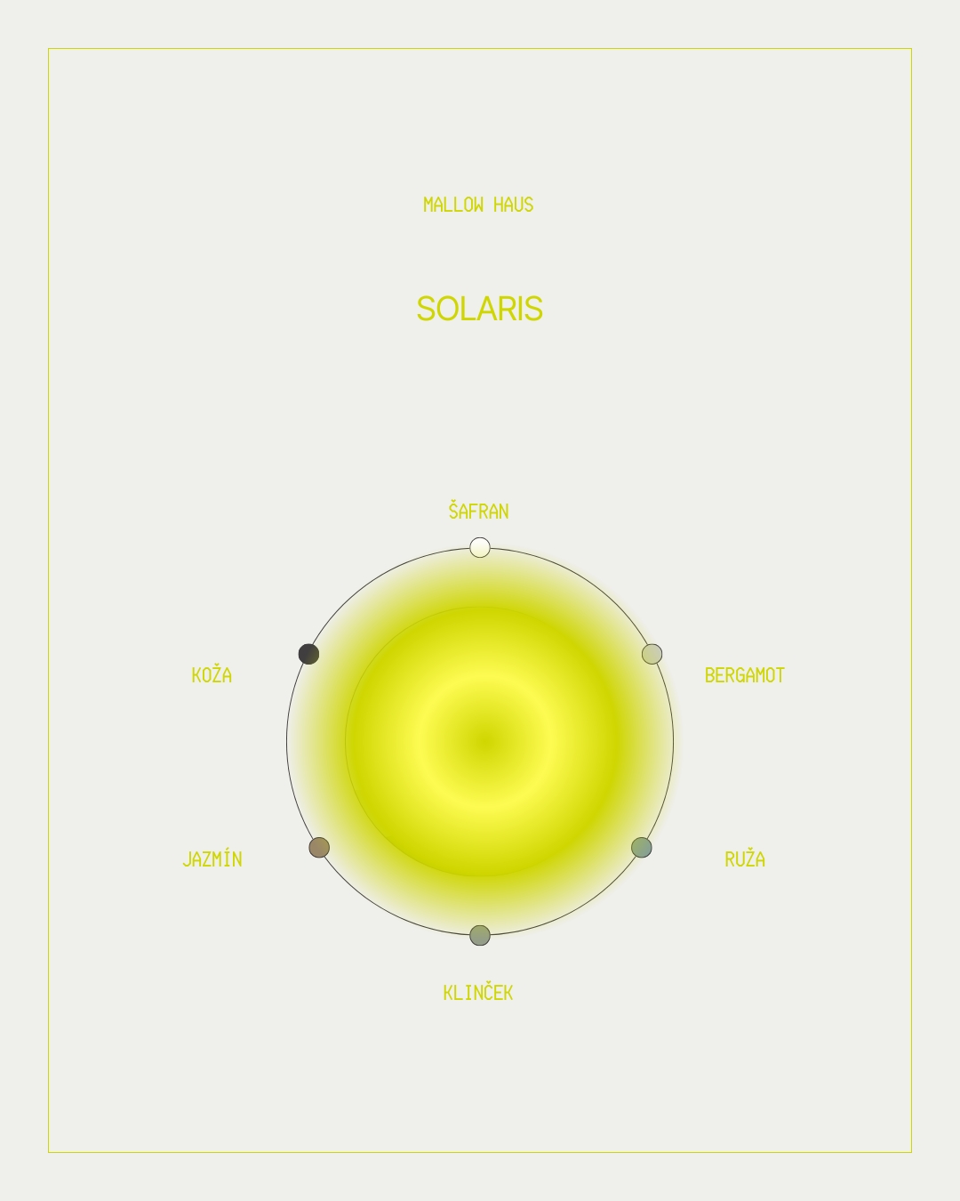 „Solaris – odvodené od slova sol, slnko. Orientálne korenie, kvety a púštne drevá prinášajú žiaru nekonečného horizontu. Vôňa, ktorá nesie tajomstvá púšte.“